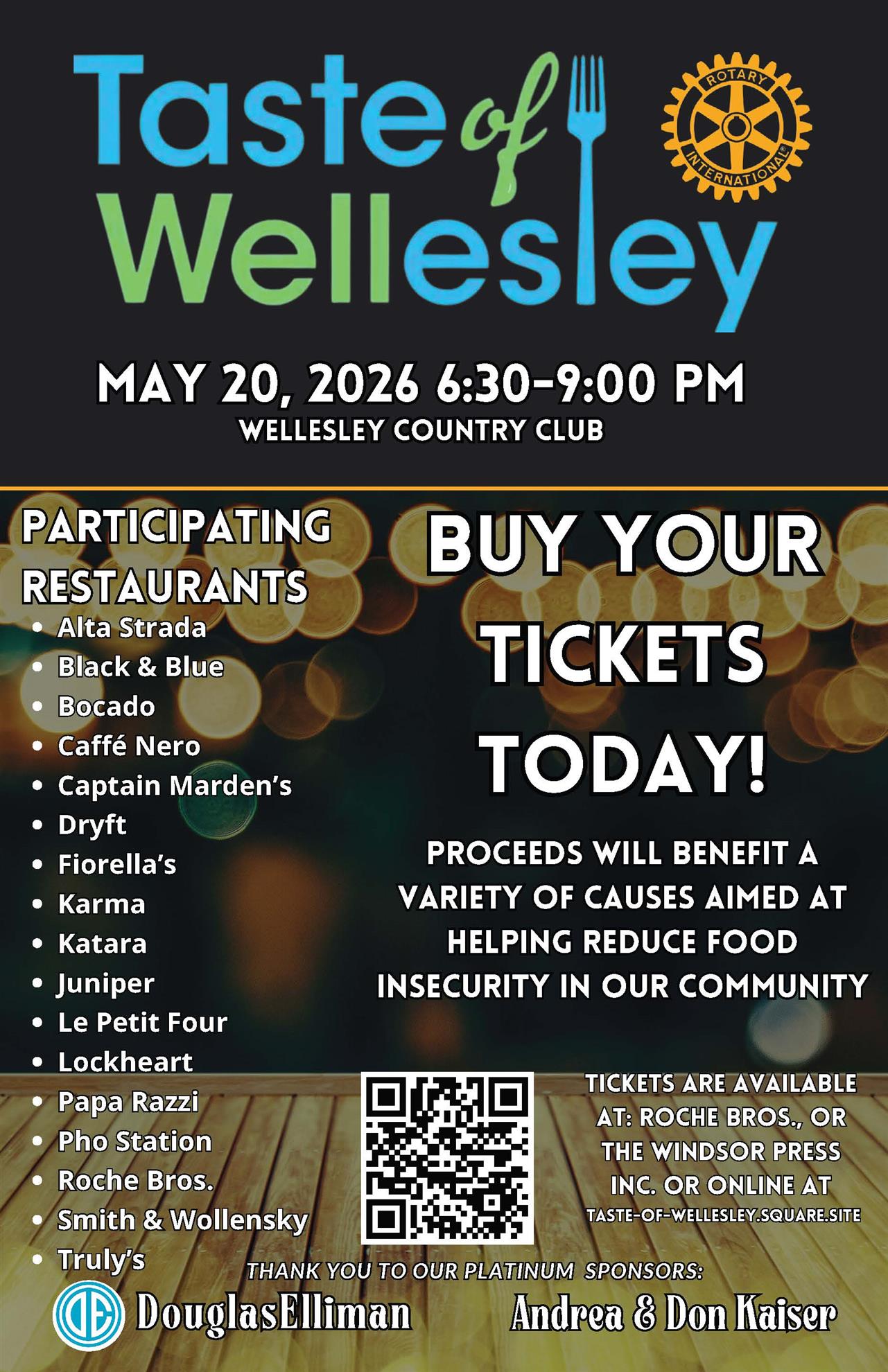 So many prizes, so little time! The Wellesley Rotary club has purchased gift cards from 50 Wellesley restaurants and many restaurants donated gift card prizes of $150, $100, and $50, so now it’s your turn to step up and win--